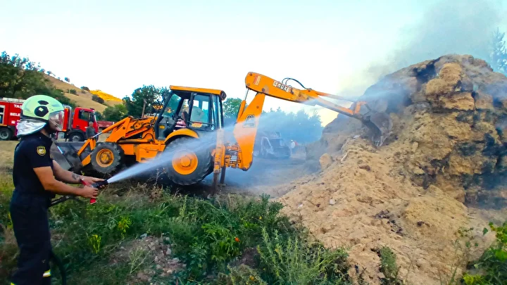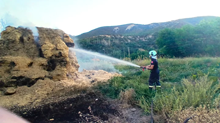Taşova Belediyesi İtfaiye ekiplerince söndürülen yangında, bin balya saman ve bir araç kullanılamaz hale geldi.