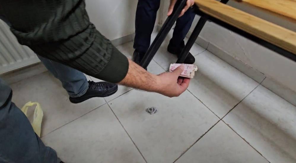 Zabıta Müdürlüğü’ne götürülen dilencilerin üzerleri tek tek aranırken bu esnada odaya alınarak bekleyen dilencilerden biri, cebindeki parayı kaptırmamak için oturduğu bankın demir ayaklığının içine sakladı.