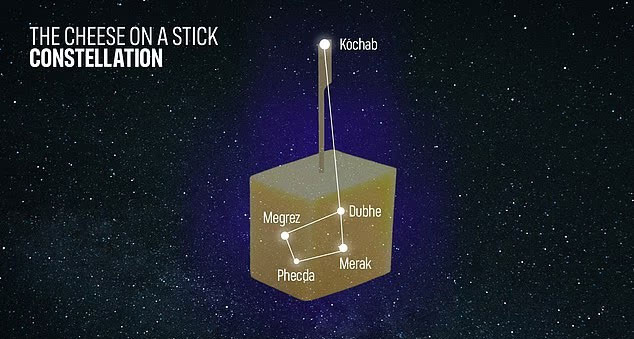 Çubuklu Peynir: Son olarak, bu takım yıldızı hem Büyük Ayı hem de Küçük Ayı yıldızlarını kullanıyor. Thompson, “Peynir kısmı, Büyük Ayı’daki Dubhe, Merak, Phecda ve Megrez’den oluşurken, çubuk kısmı Kochab aracılığıyla Küçük Ayı’ya doğru uzanıyor” diye açıklıyor. Onu görmek için gece gökyüzünde kuzey yönüne bakmak gerekiyor.