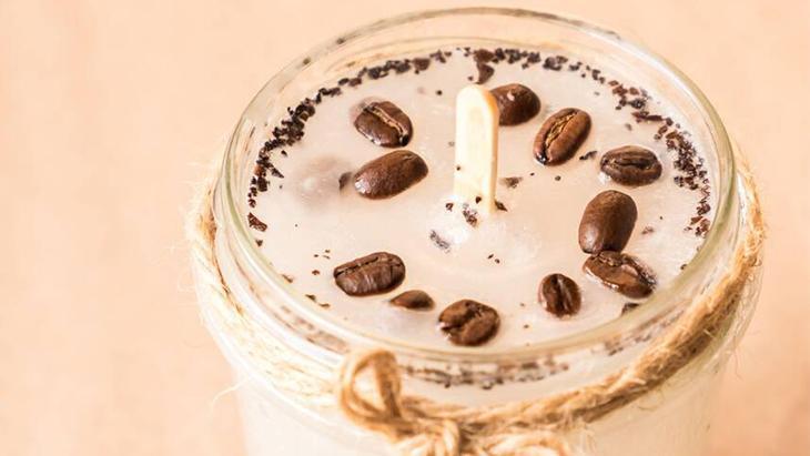 Wax tamamen eridikten sonra içine vanilya özünü ekleyin ve karıştırın. Ardından kahve çekirdeklerini de karışıma ilave edin.